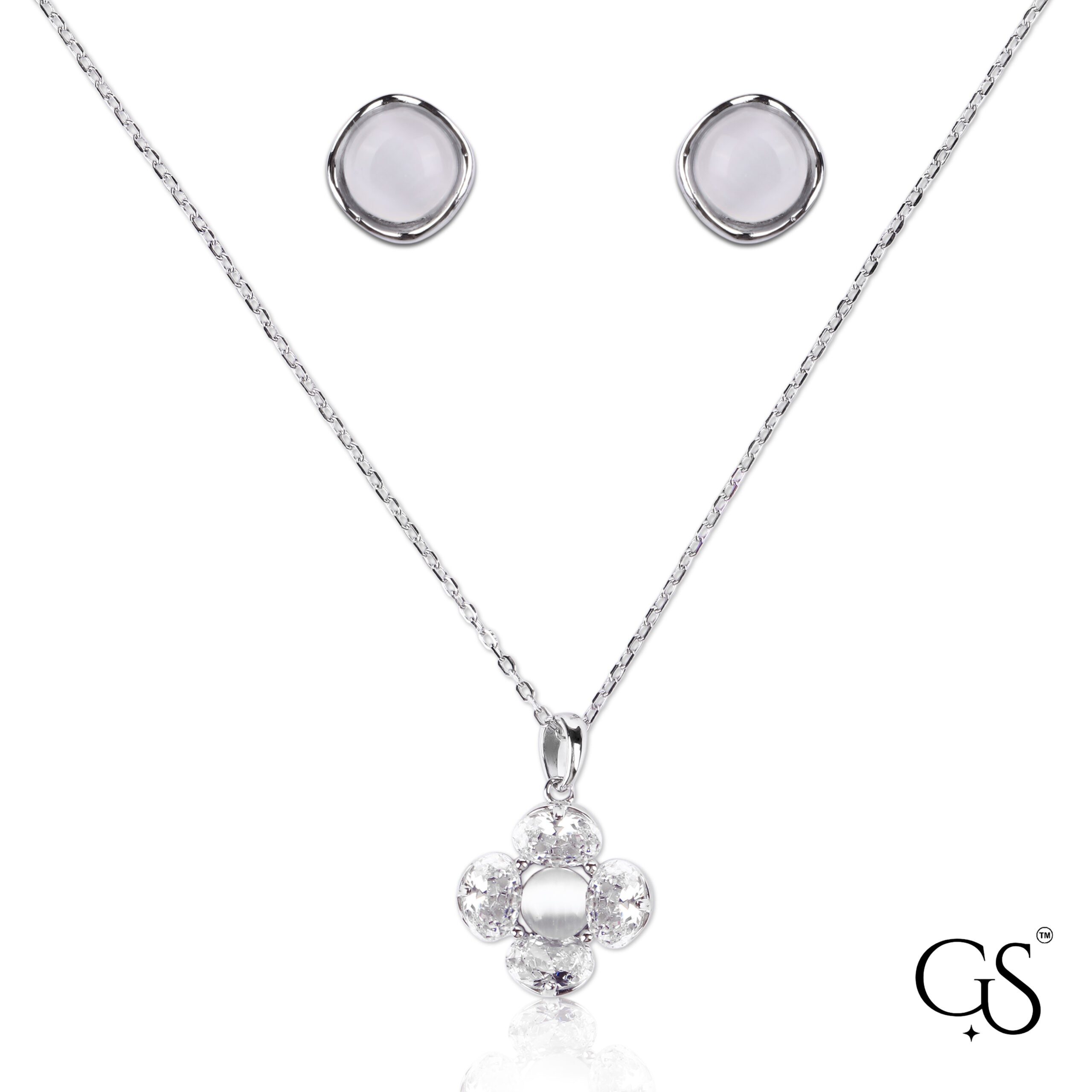 Design: Floral/Clover pendant with matching stud earrings.