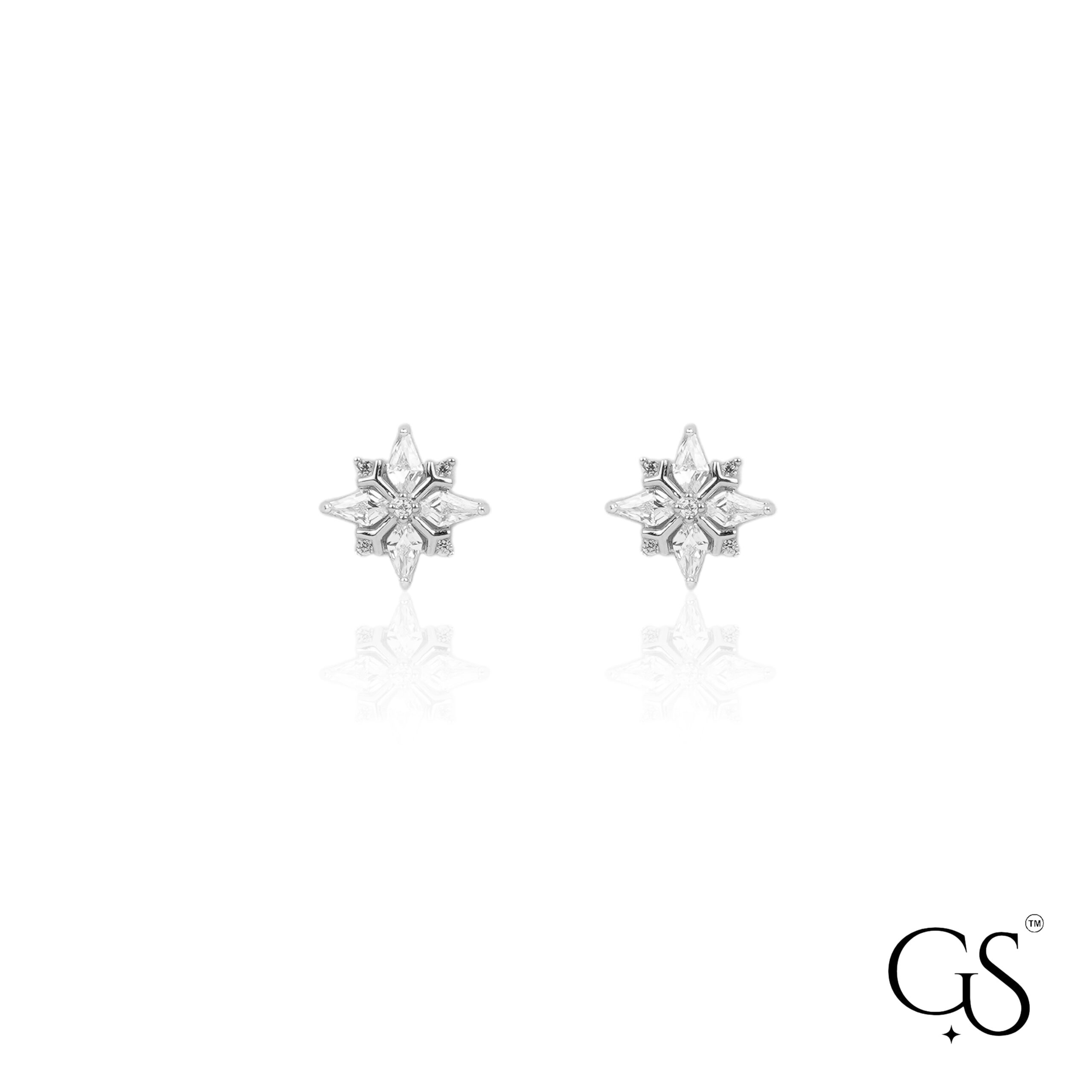Icy Silver-Toned Cubic Zirconia Snowflake Stud 925 ❄️