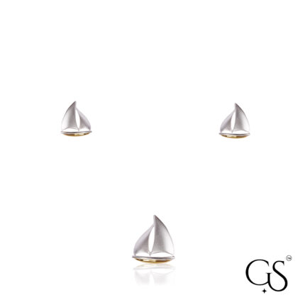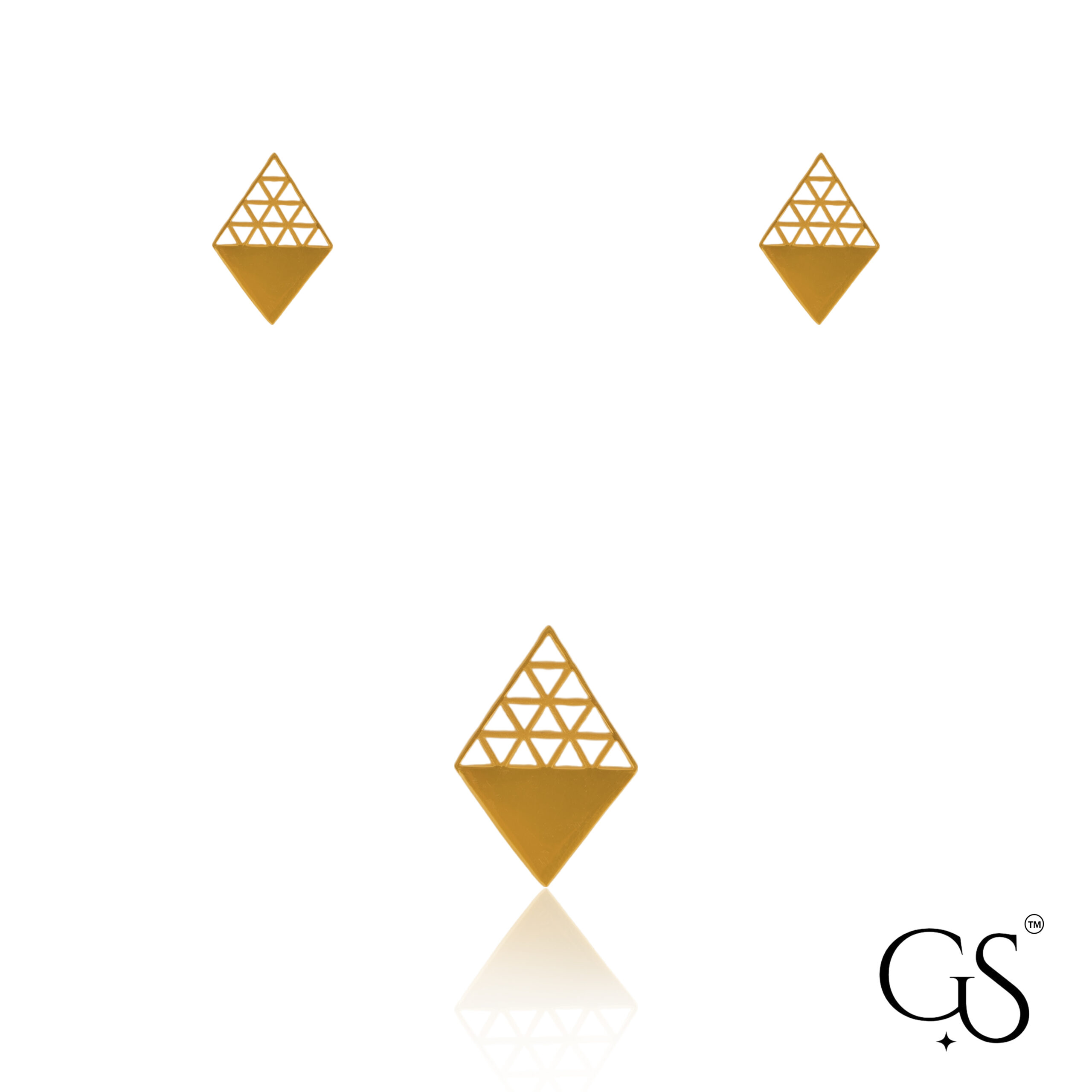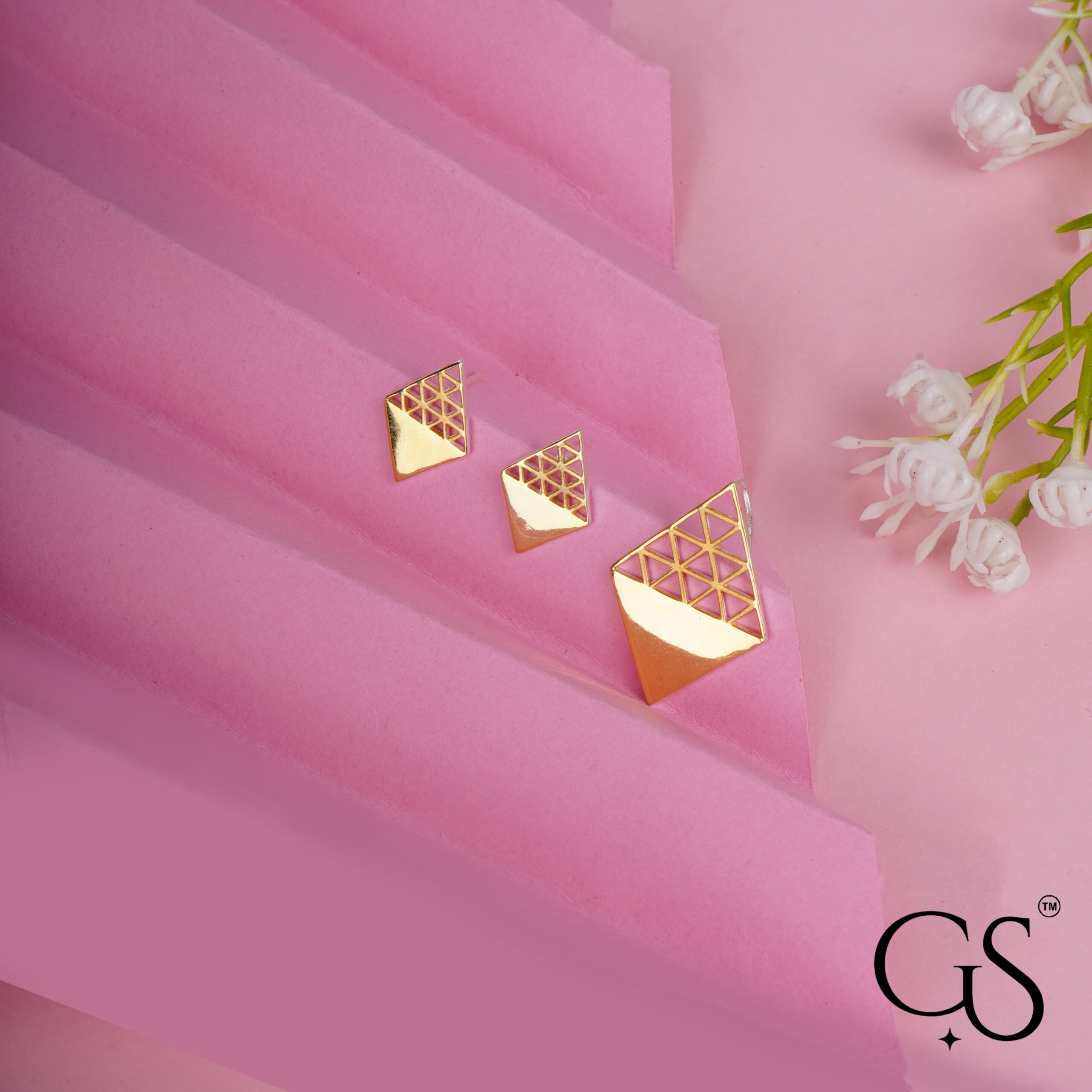 This exclusive jewelry set features a bold, modern geometric design. Crafted from high-quality 925 sterling silver, each piece showcases a striking two-tone finish with a polished gold-plated half and an intricate, latticework half.