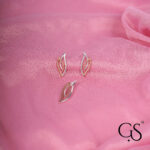 This exclusive jewelry set features a sleek, modern design inspired by the delicate curves of a falling petal. Crafted from high-quality 925 sterling silver, this collection offers a unique two-tone finish with a polished silver base and a warm rose gold accent.