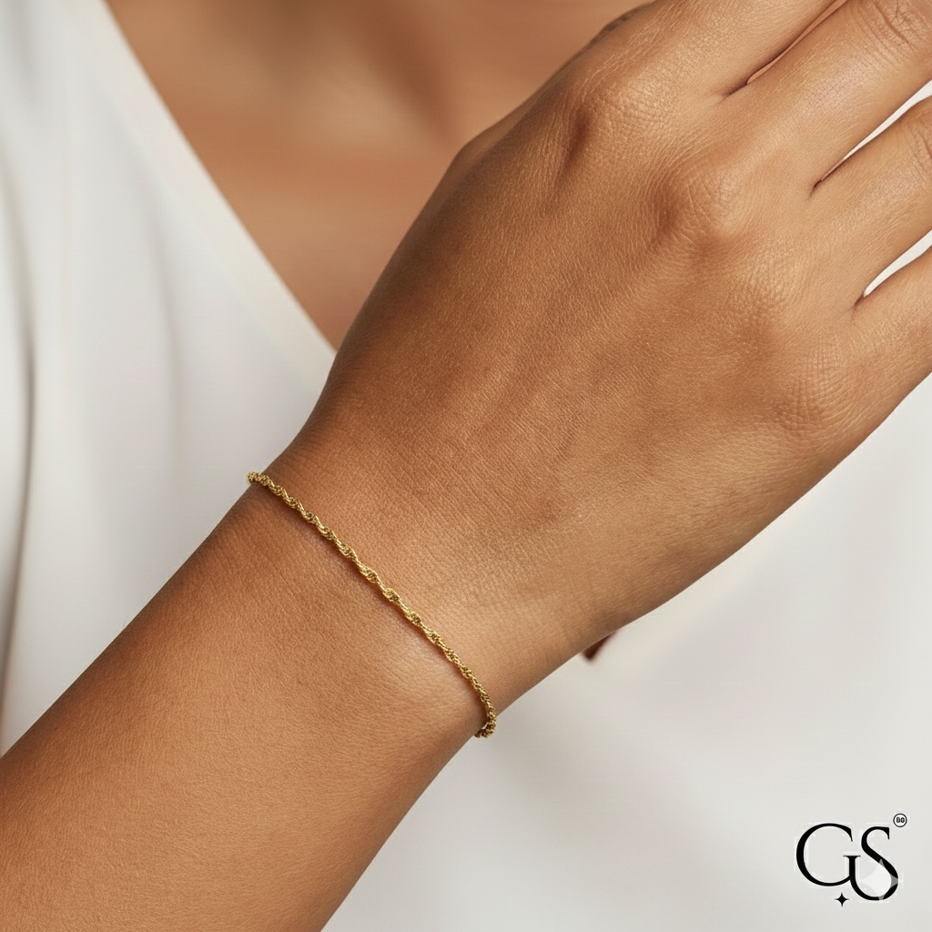 Embrace classic luxury with this expertly crafted rope chain bracelet. Made from premium 925 sterling silver and plated in radiant 18k gold, its intricate twisted texture catches the light from every angle. This versatile piece offers a sophisticated, fluid look that works perfectly as a standalone statement or as the foundation for a stylish bracelet stack.
